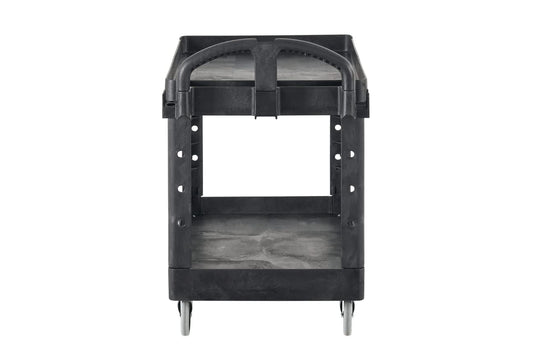 Rubbermaid Commercial Products 2‑Shelf Utility/Service Cart – Medium, Black Lipped Shelves, Ergonomic Handle, 500 lb Capacity (Model FG452088BLA)