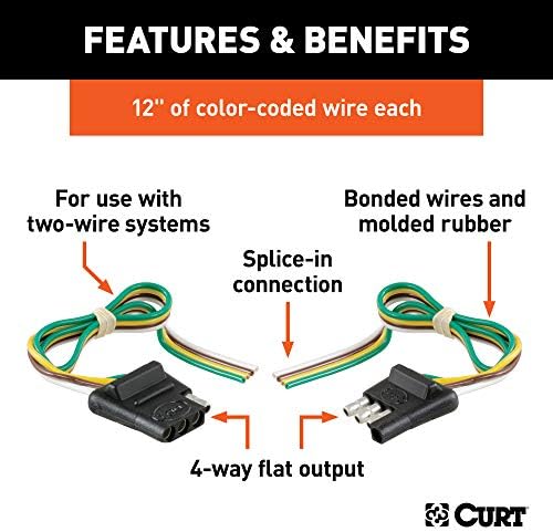 Curt Manufacturing 48-Inch 4-Way Flat Trailer End Wiring Harness (Part No. 58348)