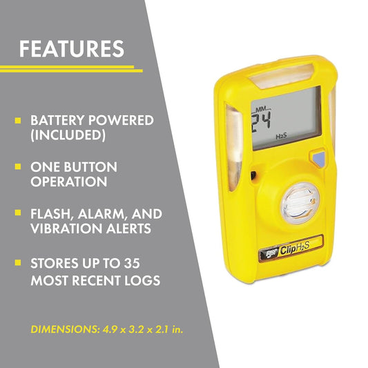 BW Technologies BWC2-H Hydrogen Sulfide (H2S) Gas Detector – Single Gas Monitor by Honeywell | Yellow, Battery Powered