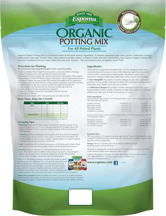 Espoma Organic Potting Soil Mix – 4qt Bag | All-Natural Soil for Indoor & Outdoor Plants, Herbs & Vegetables | Myco-Tone Enhanced | Pack of 1