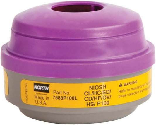 Honeywell North 7583P100L Gas & Vapor Cartridge – P100 Filter, Chlorine, HCl, Organic Vapors (1 Pair)