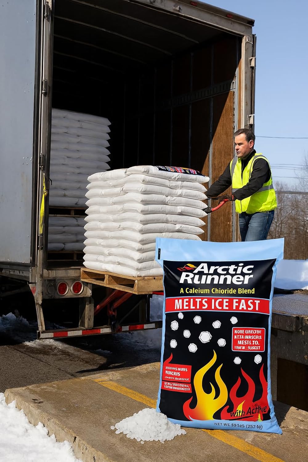 Arctic Runner Calcium Chloride Ice Melt – 50 lb Bags (49 Count Pallet) | Melts to -15°F | Pet, Concrete & Plant Safe | Commercial Grade Deicer