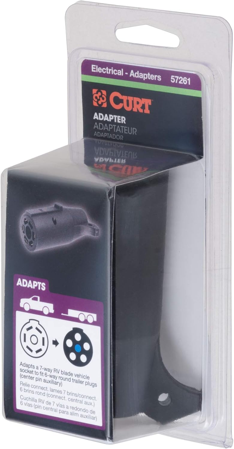 Curt Manufacturing 57261 7-Way RV Style Flat Connectors to 6-Way Round Trailer Wiring Adapter