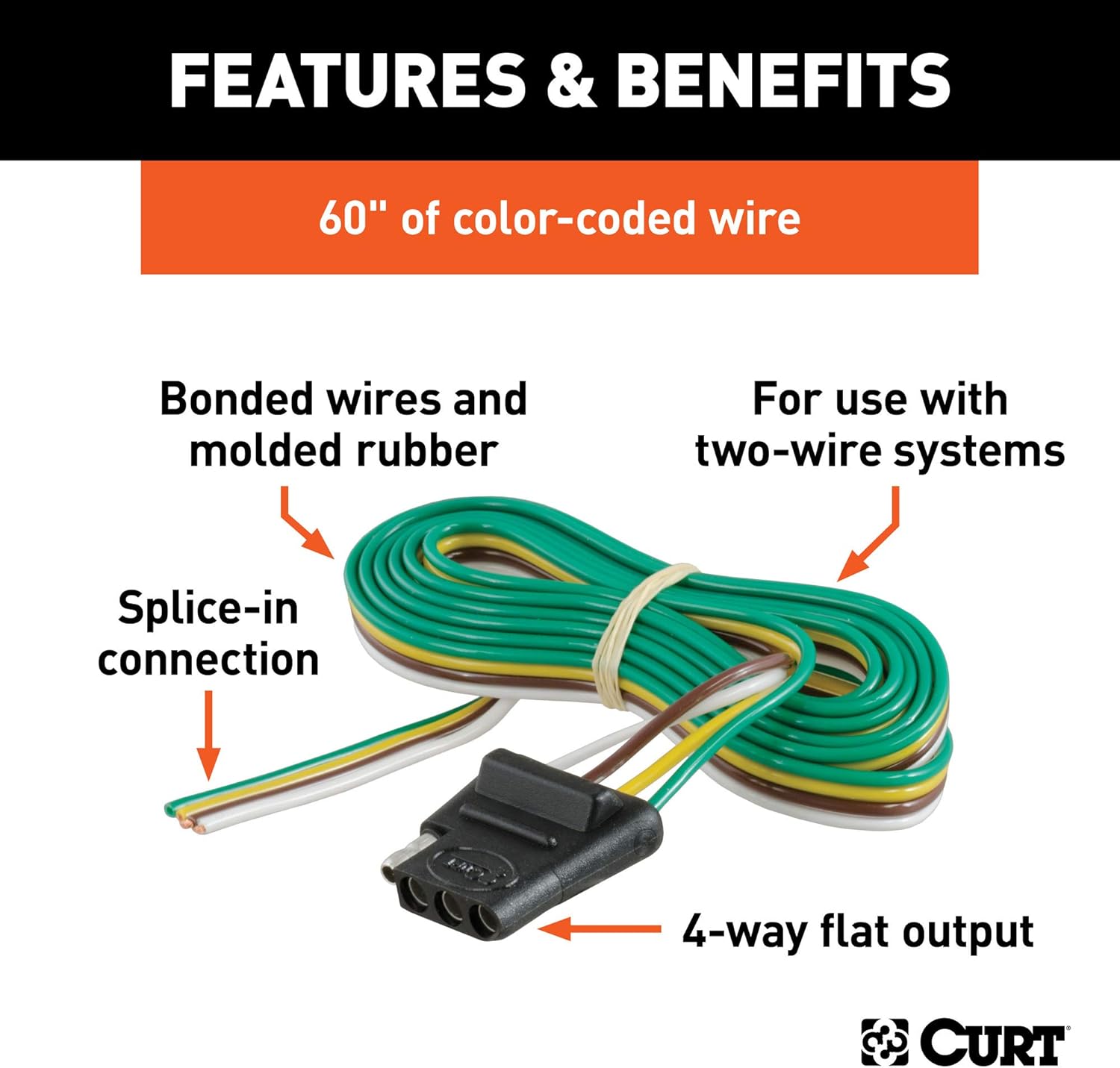 Curt Manufacturing 58040 4-Way Flat 60-Inch In-Car Bonded Trailer Wiring Harness