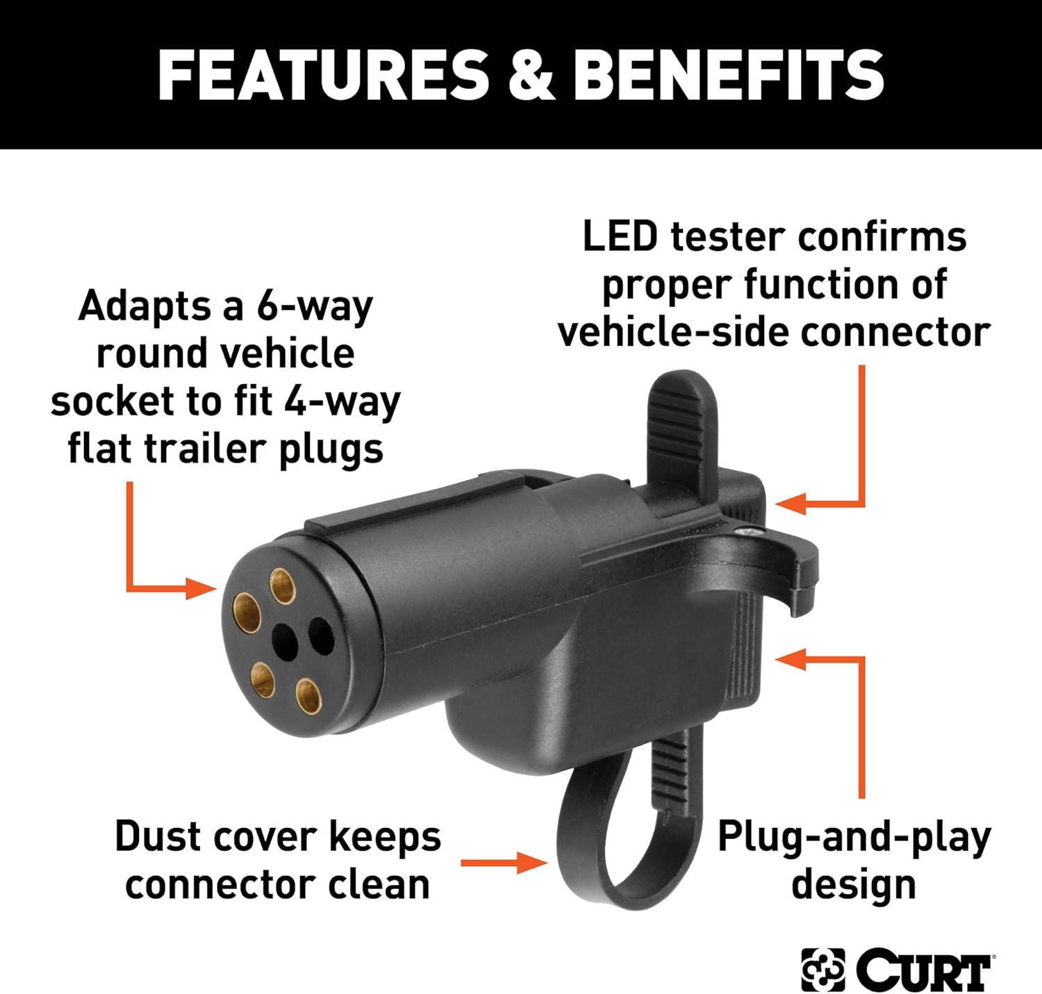 Curt Manufacturing 6 Way Round to 4 Way Flat Trailer Wiring Adapter (Part #57627)