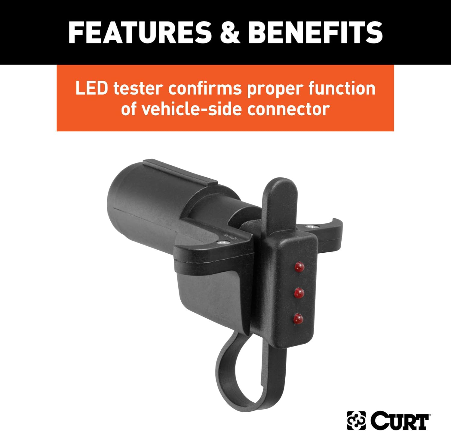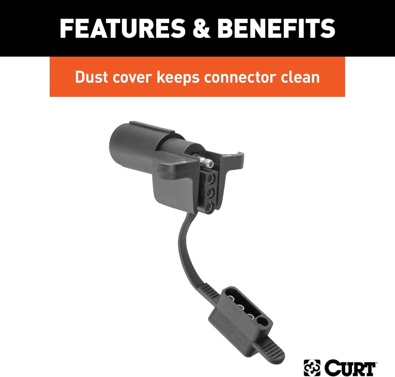 The Curt Manufacturing 6-way round to 4-way flat trailer wiring adapter (Part #57627) offers a dependable solution for connecting mismatched wiring types. Its easy plug-in design ensures a secure electrical connection for smooth and safe towing.