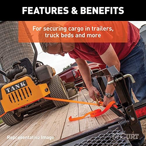 The Curt Manufacturing 83047 ratchet strap is designed for secure and reliable cargo tie-downs, featuring a durable 27-foot length and a 2-inch width for versatile use. Constructed with high-strength materials, this strap offers exceptional load stability during transport. The vibrant yellow color enhances visibility, ensuring easy inspection and added safety during handling and storage. The strap is equipped with yellow zinc-coated J-hooks, providing corrosion resistance and added durability in various environmental conditions. This combination of features makes the 83047 an excellent choice for securing heavy loads on trailers, trucks, or other transport vehicles. The ratchet mechanism ensures a tight and adjustable fit, allowing you to quickly secure or release cargo without hassle. Its robust design and materials are built to withstand demanding conditions, making it suitable for both professional and personal use. Whether securing construction materials, machinery, or recreational gear, this strap offers peace of mind with its reliable performance and long-lasting construction.