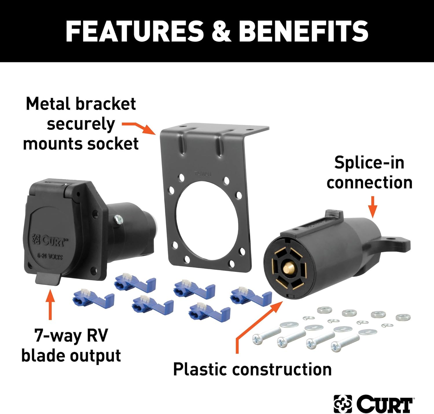 Designed with user convenience in mind, these connectors facilitate quick and straightforward connections, saving time during setup or maintenance. Their robust build quality and reliable locking system make them suitable for both professional and DIY installations, providing peace of mind on every trip. Trust Curt Manufacturing's quality and durability to keep your trailer wiring secure and fully functional.