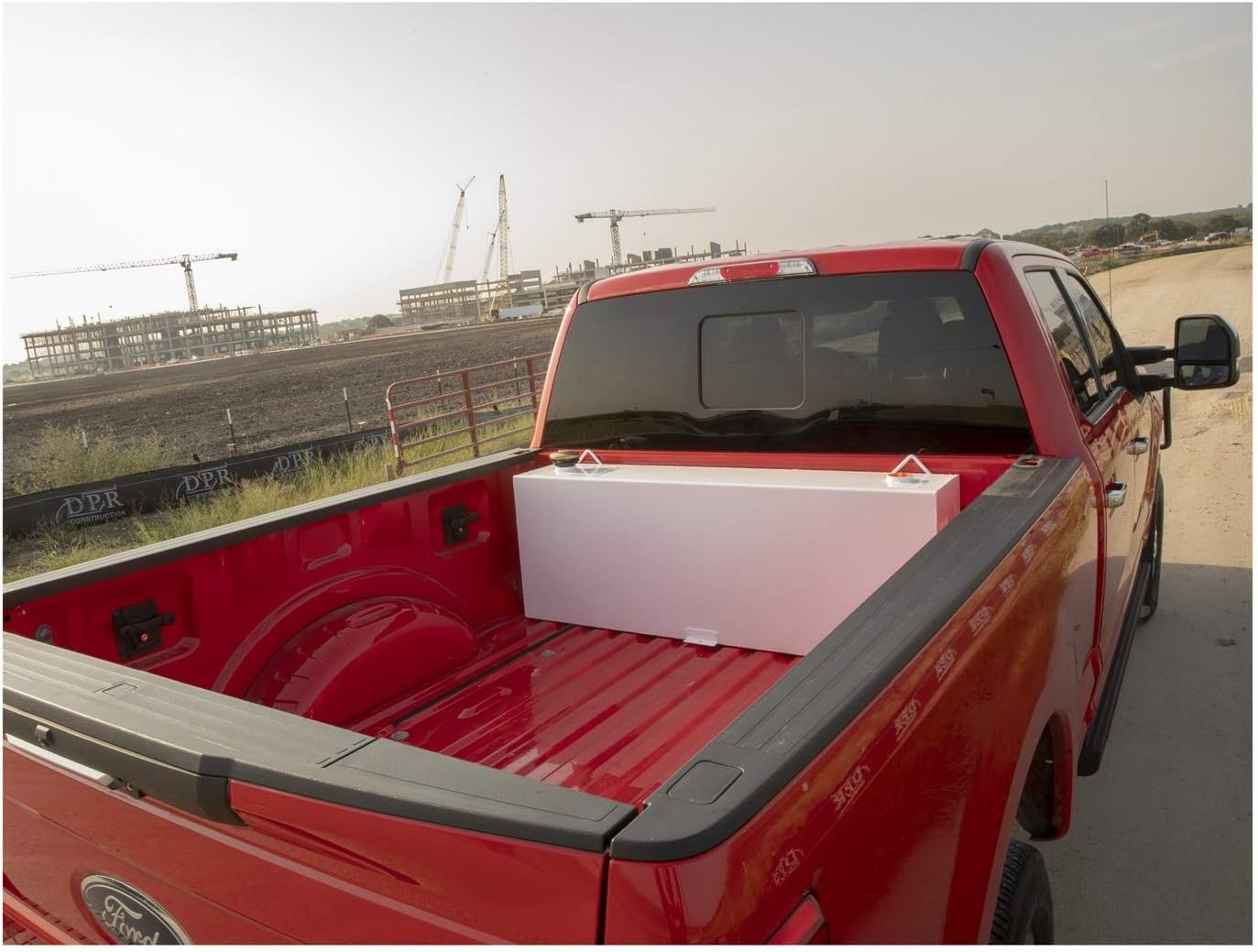 The UWS United Welding Services 45-Gallon Steel Rectangle Transfer Tank in White (#ST-45-R-W) is built from heavy-duty 14-gauge steel, fully pressure-tested for safe transport of non-flammable liquids like diesel. It features a smooth white powder-coat finish for corrosion resistance, internal baffles to reduce fluid slosh, a lockable commercial-grade vented cap, built-in drain plug, welded lift hooks and mounting tabs for secure installation. Ideal for truck beds and utility use where reliable liquid transfer is required.