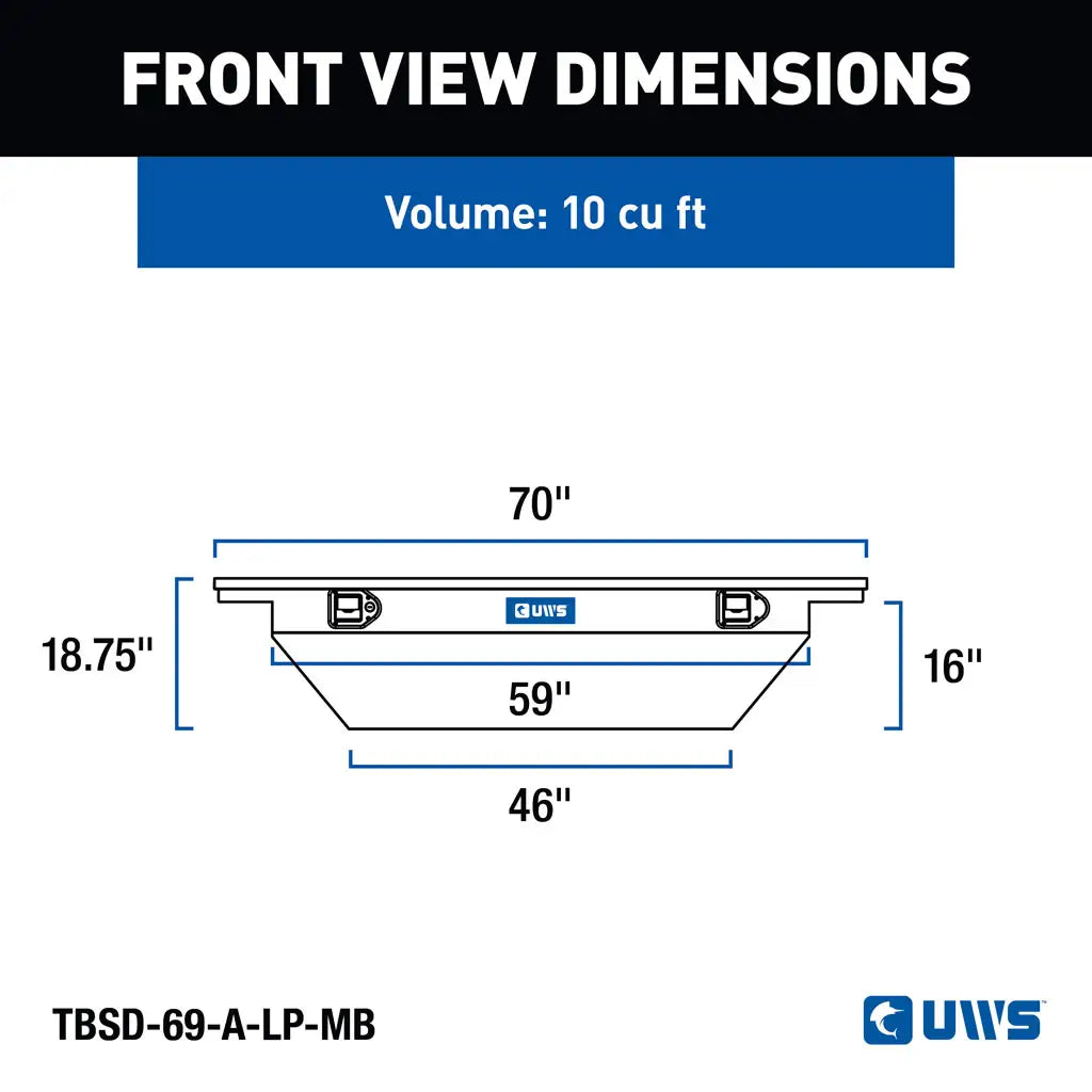 The UWS TBSD-69-A-LP-MB Deep Angled Low Profile Truck Toolbox combines rugged strength, premium design, and professional-grade storage. Made from extra-thick aluminum and finished in a sleek matte black powder coat, this 69-inch toolbox offers maximum protection and modern styling for serious truck owners.