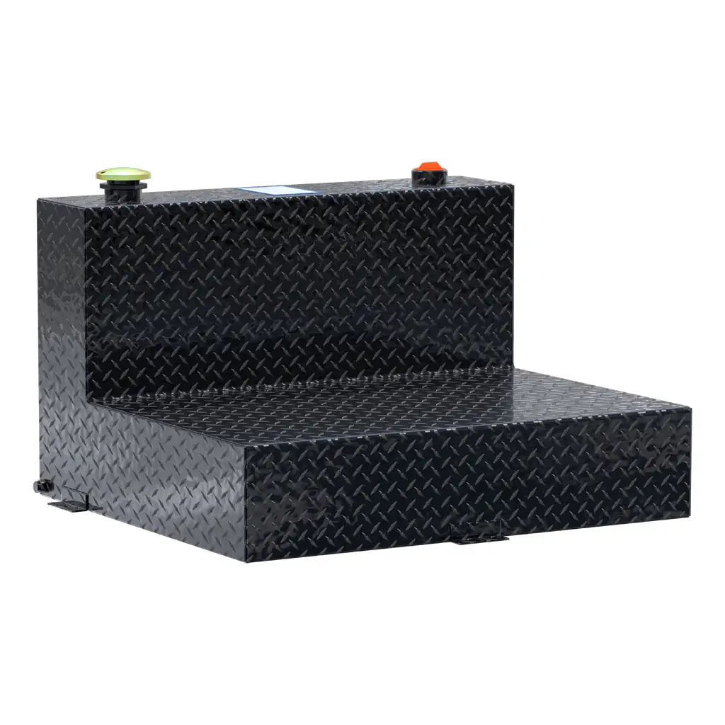 The Gloss Black 50-Gallon L-Shape Aluminum Transfer Tank #TT-50-L-T-P-BLK is engineered for strength, style, and space efficiency. Built from high-quality, corrosion-resistant aluminum with a sleek gloss black powder-coated finish, this L-shaped tank provides a 50-gallon capacity and allows room for most crossover toolboxes — delivering dependable performance and a bold, professional appearance for your work truck.