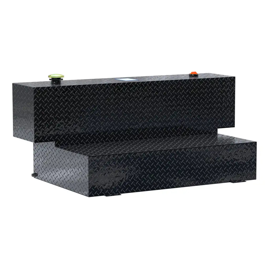 The Gloss Black Hammerhead-Style 100-Gallon Aluminum L-Shape Transfer Tank #TT-100HH-B offers a bold, functional design built for professional-grade performance. Featuring a distinctive hammerhead shape for increased storage efficiency, this durable aluminum tank delivers secure, weather-resistant fuel transport in a sleek, corrosion-resistant gloss black finish—perfect for work trucks and job sites.