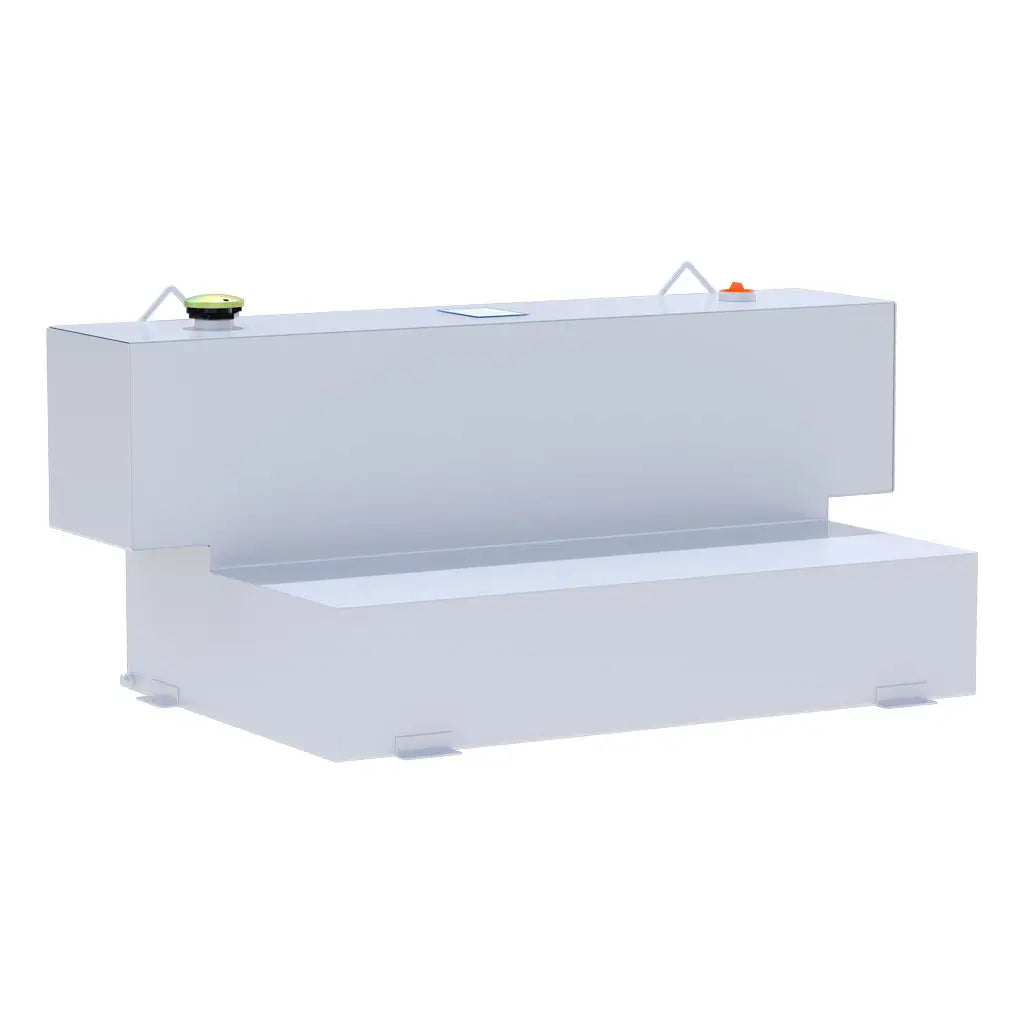 The UWS ST-100HH-W 100-Gallon Hammerhead-Style L-Shape Steel Transfer Tank in White Finish delivers a high-capacity, space-efficient solution for full-size trucks. Designed to fit snug between wheel wells, it features a heavy-duty 14-gauge steel body, internal baffles to minimize fluid slosh, a lockable vented fill cap, built-in drain plug, lift hooks and welded installation tabs ā all optimized for transporting diesel or other non-flammable liquids safely.