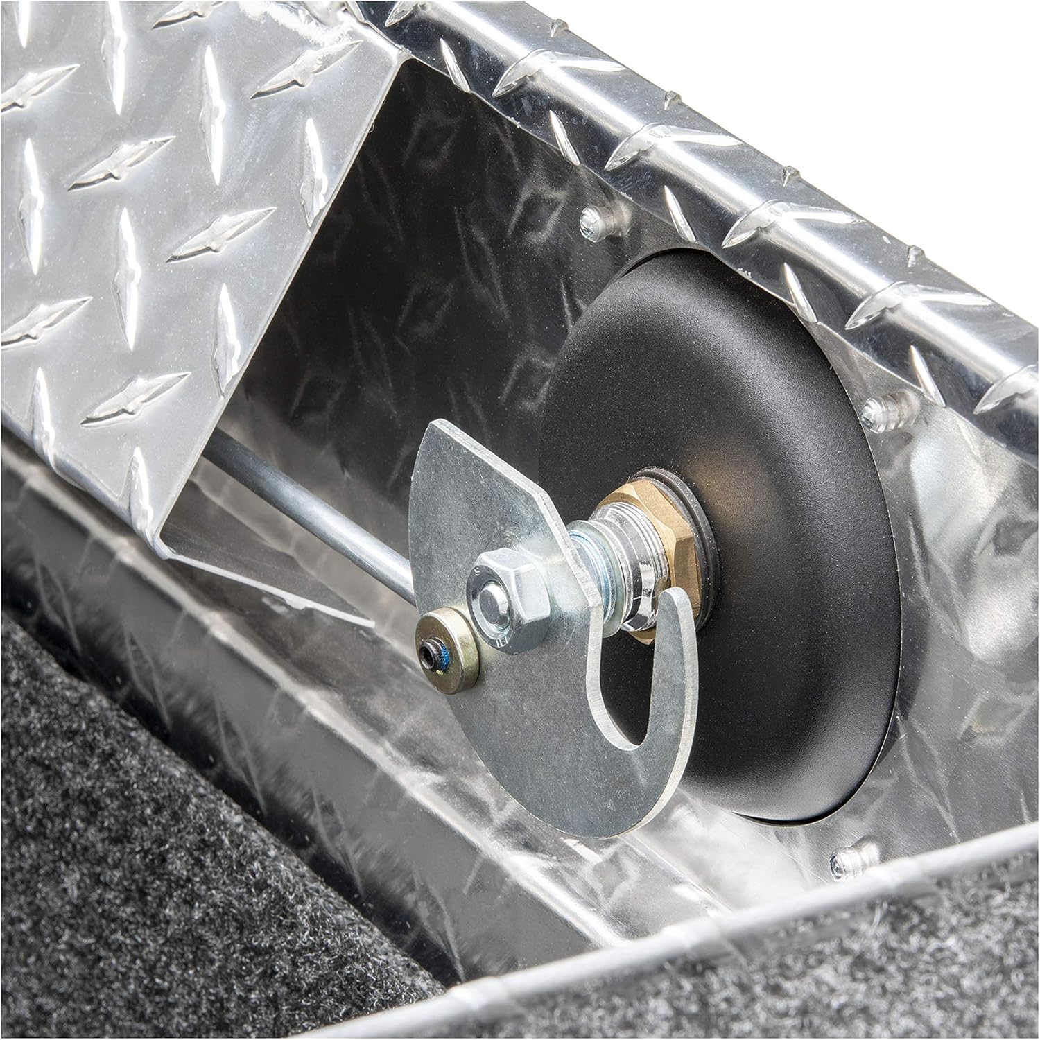 The UWS SL-69-LP-R 69" Bright Aluminum Secure Lock Crossover Truck Tool Box with Low Profile & Rail offers exceptional durability and security for truck bed storage. Constructed from a one-piece extra-thick aluminum tub, it features a patented RigidCore™ foam-filled lid, dual locking twist handles with connecting rod for side-to-side access, and an integrated lid rail for tie-down versatility. The MicroSeal™ gasket, 90° self-closing lid, and built-in tool trays provide professional-grade protection and organization.