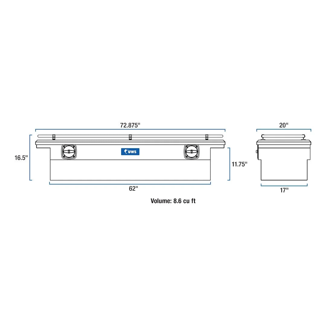 The UWS SL-72-LP-MB-R 72″ Secure Lock Low-Profile Matte Black Toolbox with Rail is engineered for tradesmen who demand both security and style. Featuring dual twist-handles for locking from either side, a heavy-duty one-piece aluminum tub, patented RigidCore™ foam-filled lid to resist warping, and an integrated top rail for cargo tie-down — this toolbox brings full utility to the job site and the road.