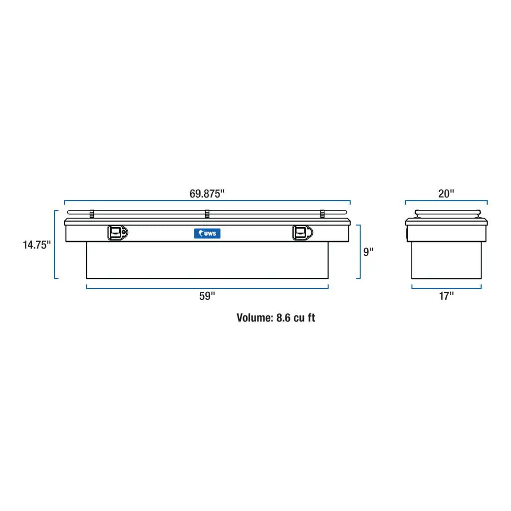 The Bright Aluminum 69" Crossover Truck Tool Box with Rail #TBS-69-R offers durable, weather-resistant storage with added versatility. Made from corrosion-resistant bright aluminum, this crossover tool box features an integrated rail system for easy attachment of cargo and truck bed accessories. Its sleek design, secure locking system, and ample storage space make it the perfect choice for both professional and personal use.