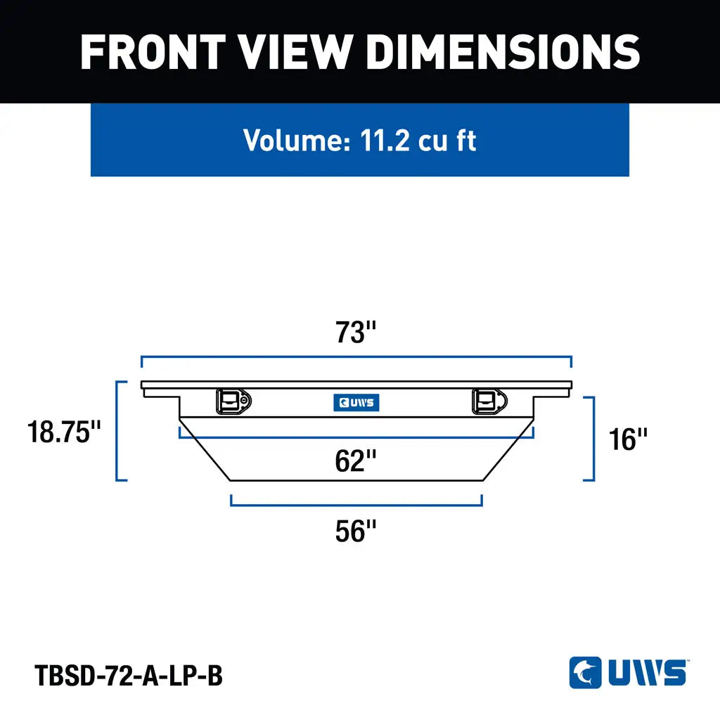The UWS TBSD-72-A-LP-B Gloss Black Deep Angled Low Profile Toolbox combines rugged performance, sleek style, and premium security for professional truck owners. Built from heavy-duty gloss black aluminum, it offers corrosion resistance, strength, and an aggressive look that complements any modern pickup.